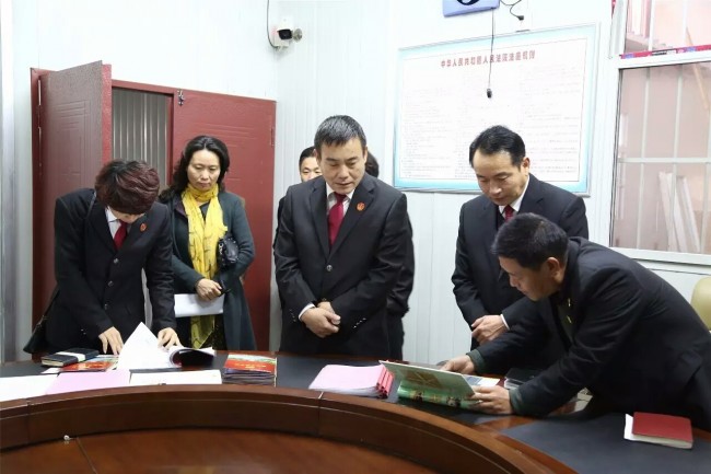 王炅院长一行首先参观了鄢陵法院诉调对接中心,翻阅了多元化解纠纷工作的相关资料,对鄢陵法院“以法院为主导、突出地域特色”的诉调对接工作有了直观感受。