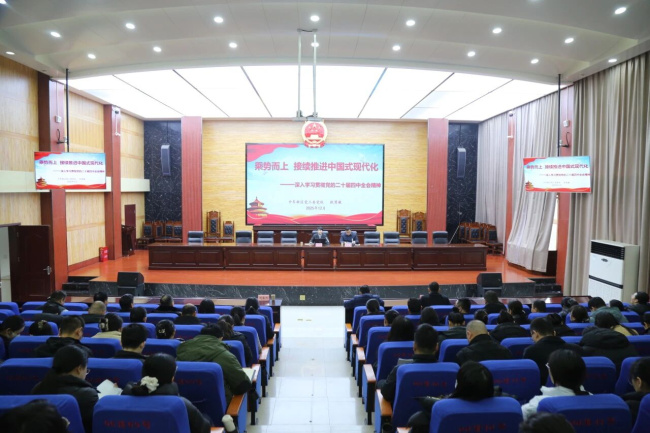 为深入学习贯彻党的二十届四中全会精神,引导干警切实把思想和行动统一到全会决策部署上来,2026年1月5日上午,中牟县人民法院邀请中牟新区党工委党校讲师耿慧敏,为全院干警作党的二十届四中全会精神专题宣讲。