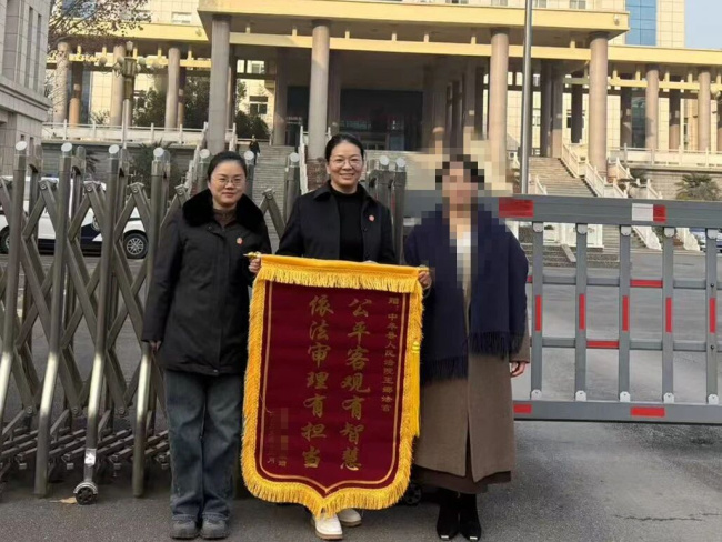 第三面锦旗被送到了王娜法官手中,背后是一起积怨已久的挂靠经营合同纠纷。该案中,两名合伙人挂靠公司承揽工程,后续因利益分配引发矛盾。王娜法官经过多次庭审调查与调解,最终依法作出公正裁判。判决生效后,双方均未上诉,王娜法官还主动跟进判决落实情况,当事人感念其负责态度,特意送来锦旗致谢。
