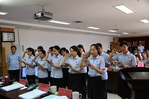 杨阳代表审判员作了发言。一要增强服务意识,自觉接受监督。二要注重学习,提高素质。三要恪守法官职业道德,公正执法、一心为民,廉洁自律。